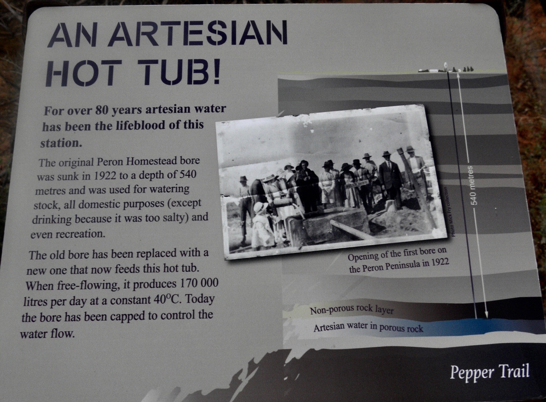 Peron Homestead Artesian Hot Tub Published on May 13, 2019 in Denham, Shark Bay WAFull resolution (1801 × 1327) ← Previous Next →